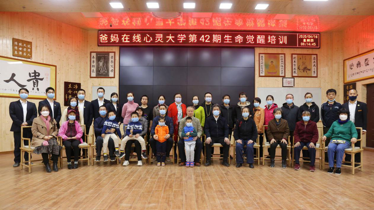 2020年4月15日,爸媽在線心靈大學第42期“生命覺醒健康幸福”培訓圓滿落下帷幕。五天中,學員們歷經了中華優秀傳統文化的熏陶,刷新了對生命的認知和對自我的了解,生命覺醒帶給學員們充分的心靈洗禮,在文化的